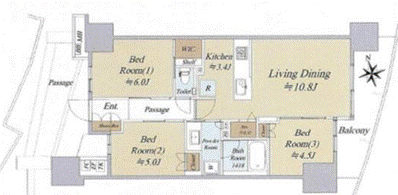 専有面積 壁芯 65.46㎡ 所在階 15階建/10階部分