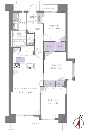 | 主要採光 | 南向 | バルコニー | 南向9.87㎡ |