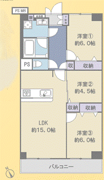 | 主要採光 | バルコニー | 南西向8.96㎡ | |